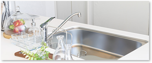 人造大理石カウンター&シンク:熱や衝撃に強くて、お手入れ簡単、いつもキレイをキープできます。シンクは、段差がないので汚れがたまる心配がありません。排水部分は繋ぎ目のない一体成型。引出し底板:表面にEBコートを施した引出底板はキズ・汚れに強く、油汚れ、もらいさびを簡単に落とせます。