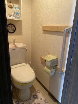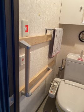 今回はご実家のトイレの手摺り取付と、キッチン水栓交換、洗面台の配管水栓交換を承りました。