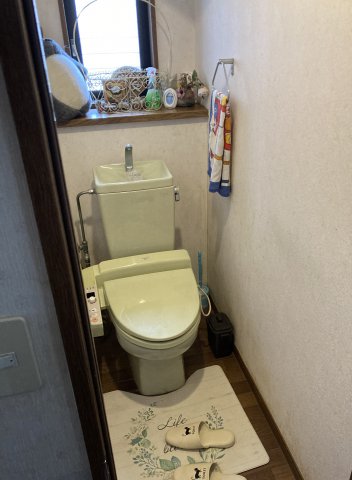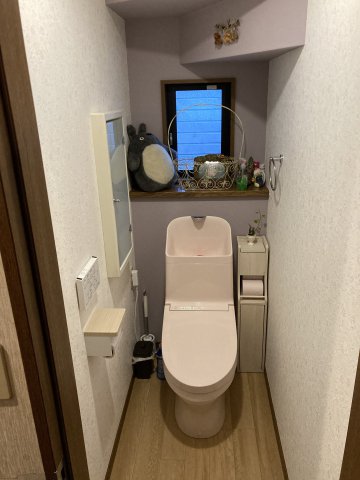 壁紙の色とトイレの色で、かわいらしい印象になりました。