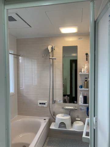 在来のタイル貼りのお風呂に比べますと、ユニットバスになるだけで冬の寒さが軽減されますが、三乾王(浴室換気乾燥暖房機)も施工させていただきましたので、暖かさを実感していただけますね。