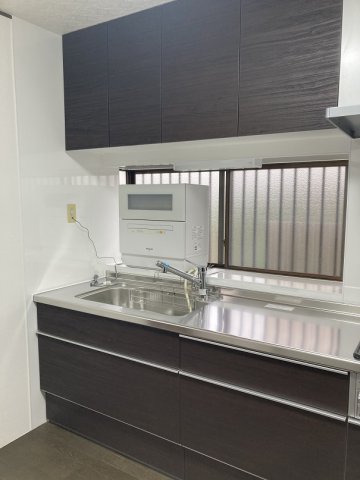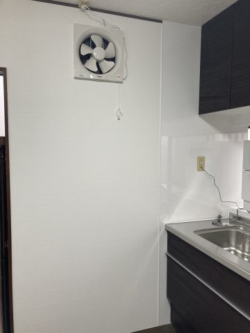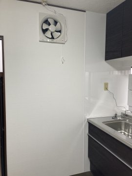 レンジフードも反対側の位置に移動し、もとの換気扇もそのまま新しい物で利用しております。