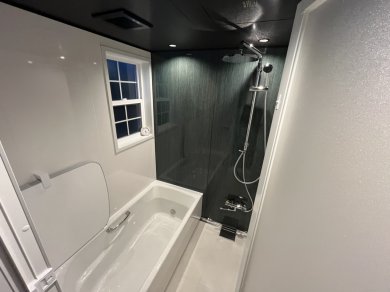 オーバーヘッドシャワーもあり、高級感のある浴室に雰囲気が変わりました。
