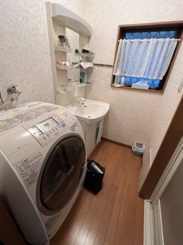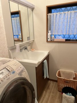 洗面台交換とあわせて、床の貼替と壁にキッチンパネルの施工をさせていただきました。