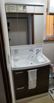 三面鏡で収納も増え、使いやすい洗面台になりましたね。