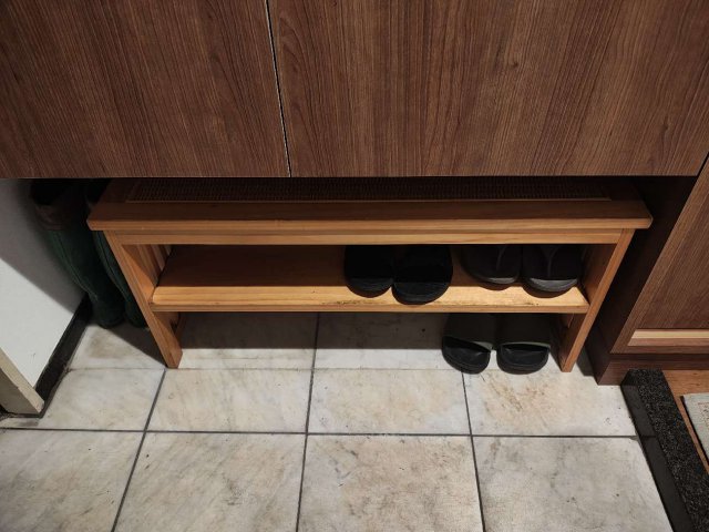 収納下にスペースを設けて『ベンチ兼靴置き』をすっきりと収納できるように設計。