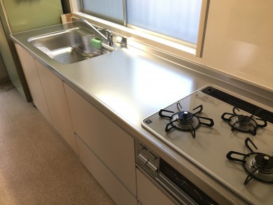 湯沸かし器を着けると配管の為に奥のスペースが残ってしまい、引出しがでて動線が狭くなってしまうため電気温水器をご提案いたしました。シンク下のみ開き扉にし、小型の電気温水器がスッキリ収まりました。キッチンもスペース が広くなり、お湯がすぐ出るようになったと大変お喜び頂きました。