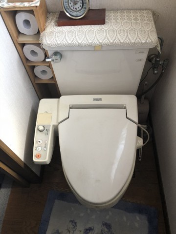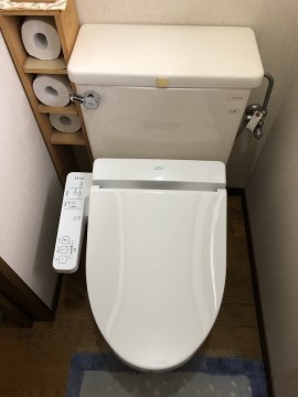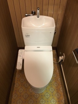 壁の角に設置されたタンクトイレでしたが、今回は手洗も以前に比べると使用しやすくなり、喜んでいただけました。