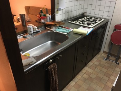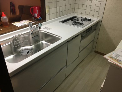 引出タイプのキッチンへ変更したことで収納力も上がり人造大理石のワークトップになったことでお掃除もしやすく、キッチン自体も明るくなり、気に入って頂けて良かったです。