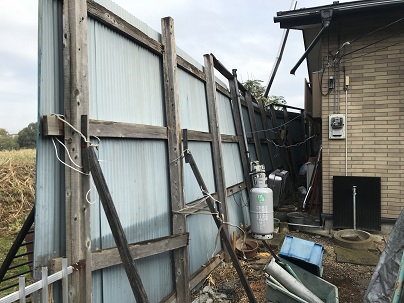 既存が木製柱に鉄板の波板で作られており、かなり劣化が進んでいました。