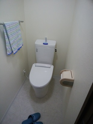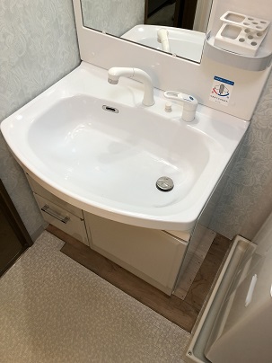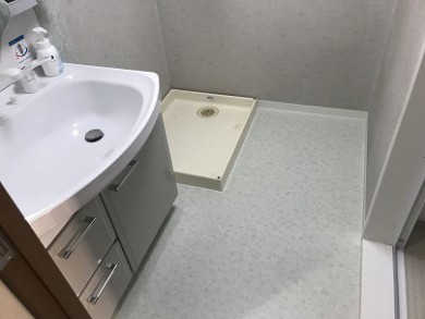 狭山市内のマンションにお住いのI様邸にて、浴室交換・洗面台交換・トイレ交換とそれぞれのクロス張替・床のクッションフロアー張替を施工しました。