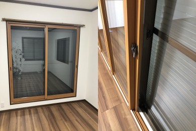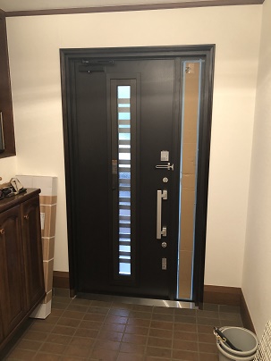 狭山市にお住いのO様邸にて、玄関ドア、キッチン水栓交換、2階居室各部屋のインプラス、EV車用プラグ設置、エアコンの撤去復旧の複合工事を施工いたしました。