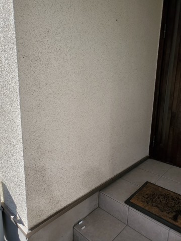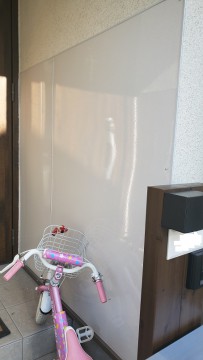 新築購入したがモルタル壁のパターン突起が鋭く皆手とか顔とかを擦ってしまい危ないためパネル貼を提案させていただきました。