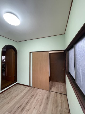 ・2階洋室 内装リフォーム 壁・天井クロス張替え、床増し張り、照明交換、階段周り クロス張替え施工させていただきました。
