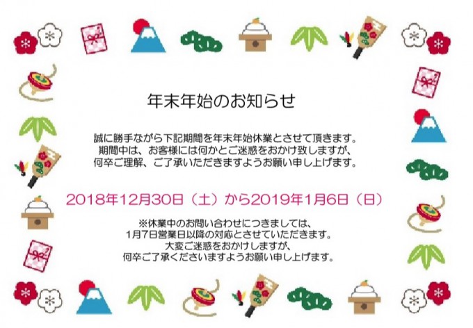 リフォームなら宮本工務店 年末年始のお知らせ (狭山市・入間市・所沢市)