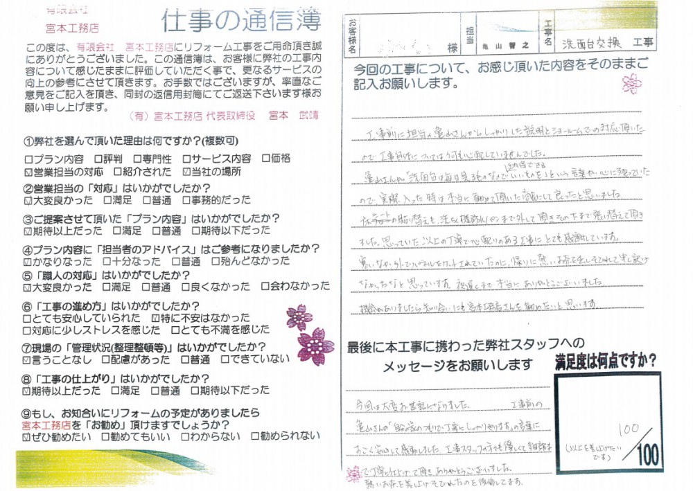 工事前の亀山さんの「自分の家のつもりで丁寧にしっかりやります!」の言葉に
