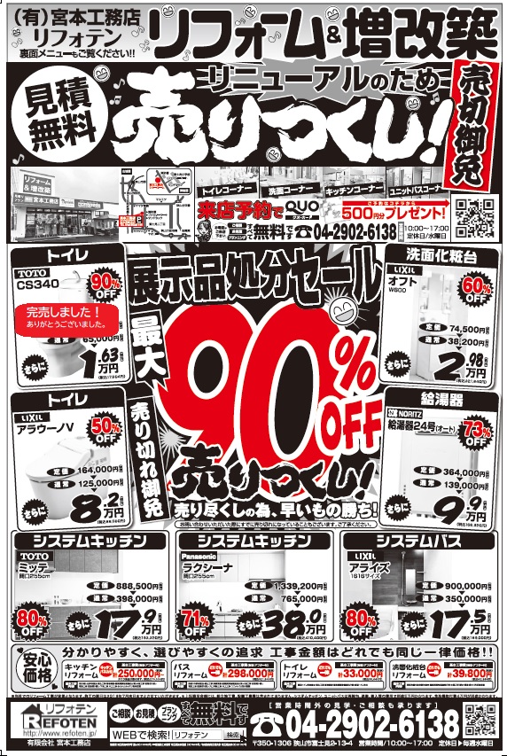 [狭山市] 売切れ御免!展示品処分セール開催中!