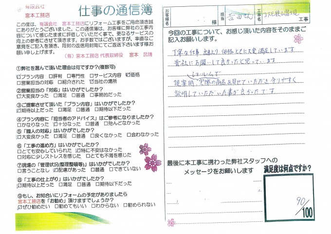 ・今回の工事について、お感じ頂いた内容をそのままご記入お願いします。