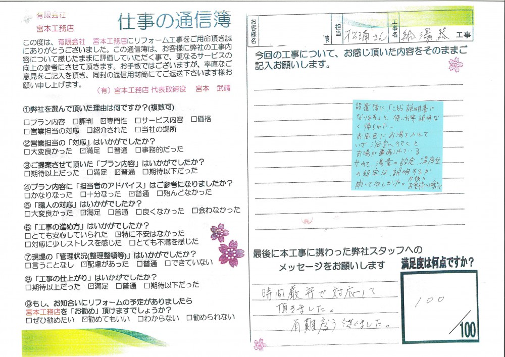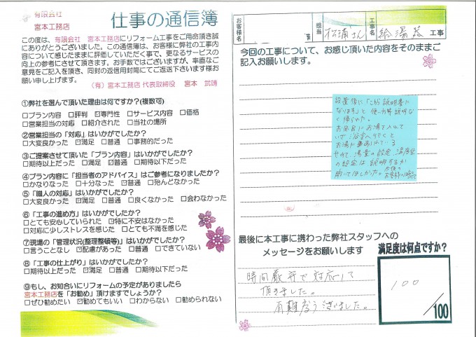 ・今回の工事について、お感じ頂いた内容をそのままご記入お願いします。