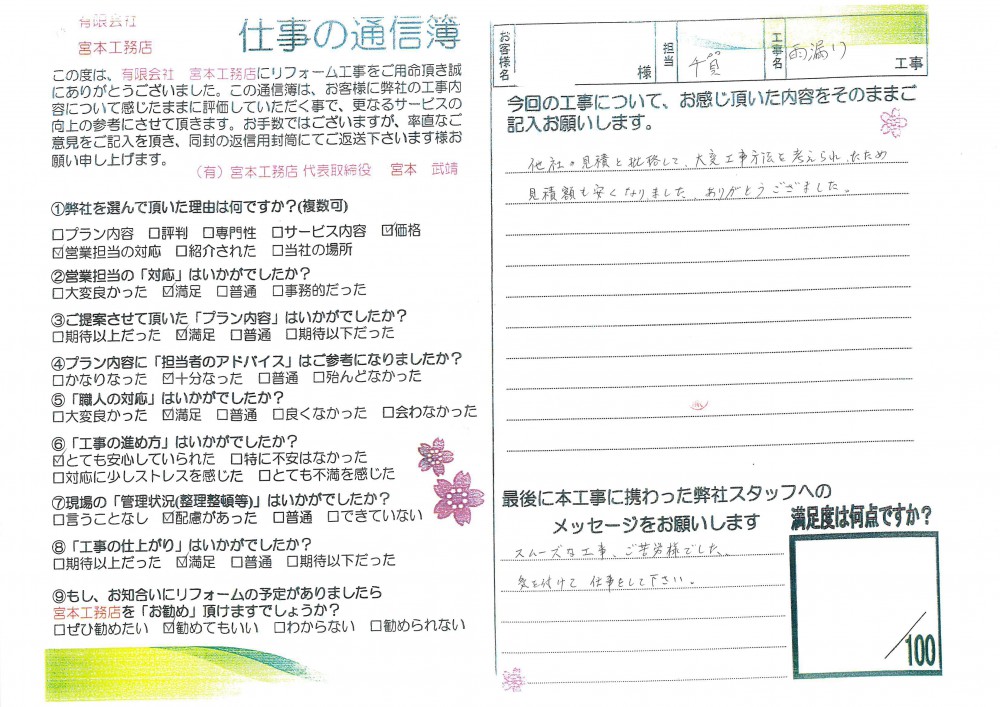 ・今回の工事について、お感じ頂いた内容をそのままご記入お願いします。