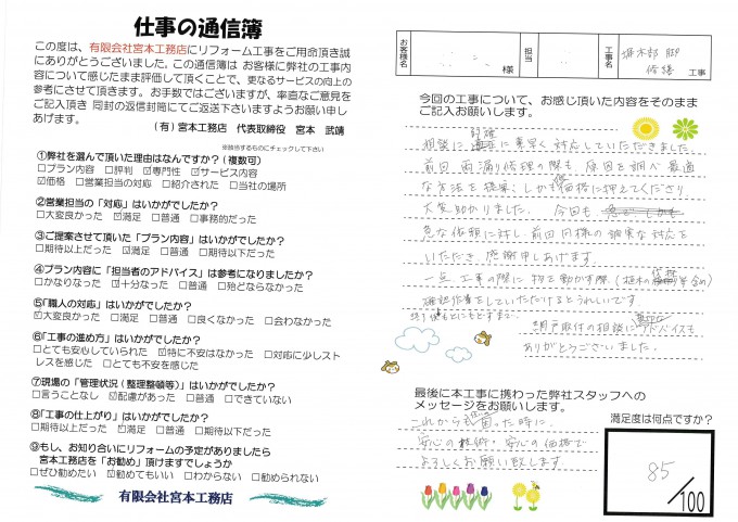 ・今回の工事について、お感じ頂いた内容をそのままご記入お願いします。