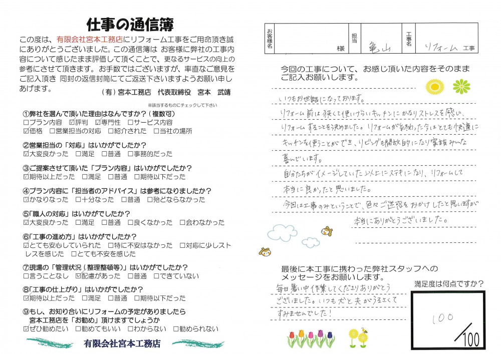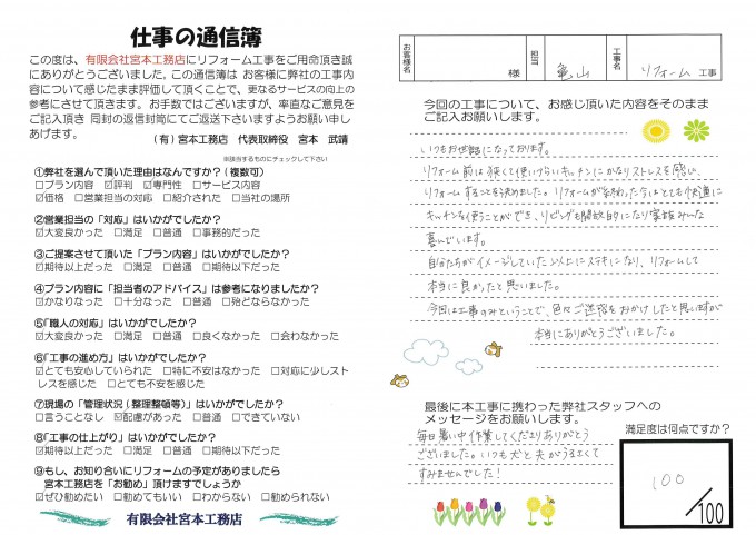 ・今回の工事について、お感じ頂いた内容をそのままご記入お願いします。