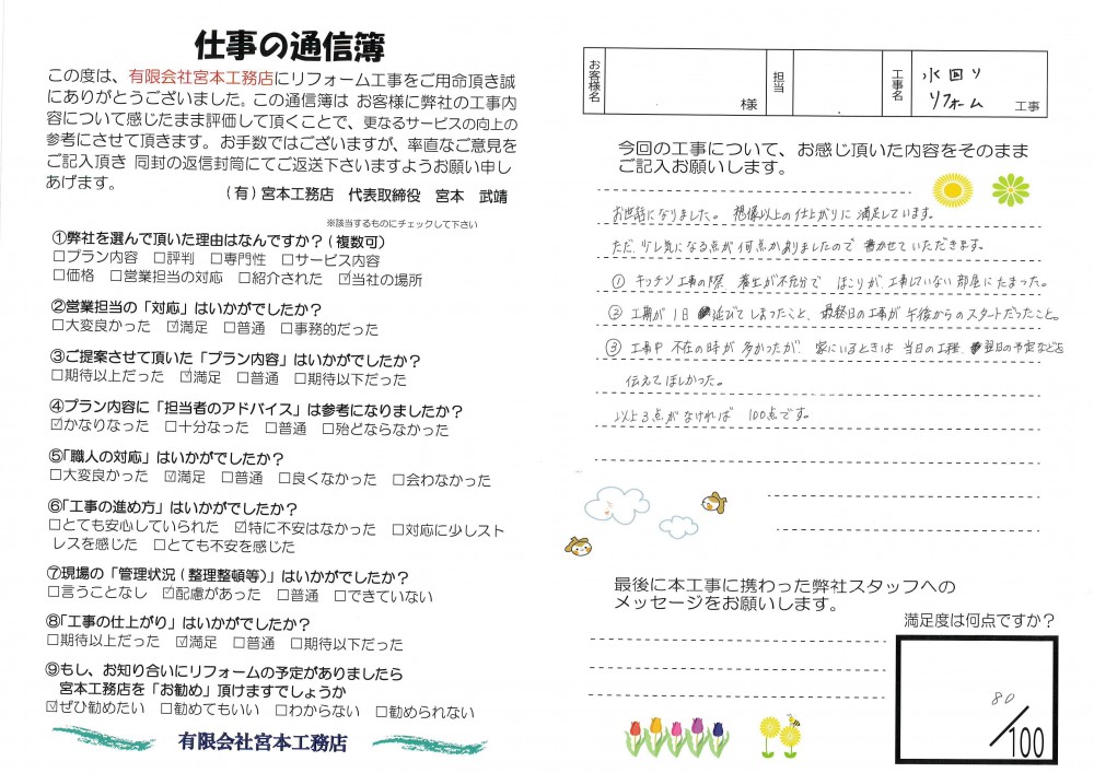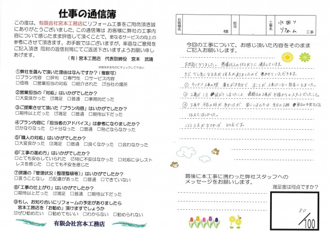 ・今回の工事について、お感じ頂いた内容をそのままご記入お願いします。