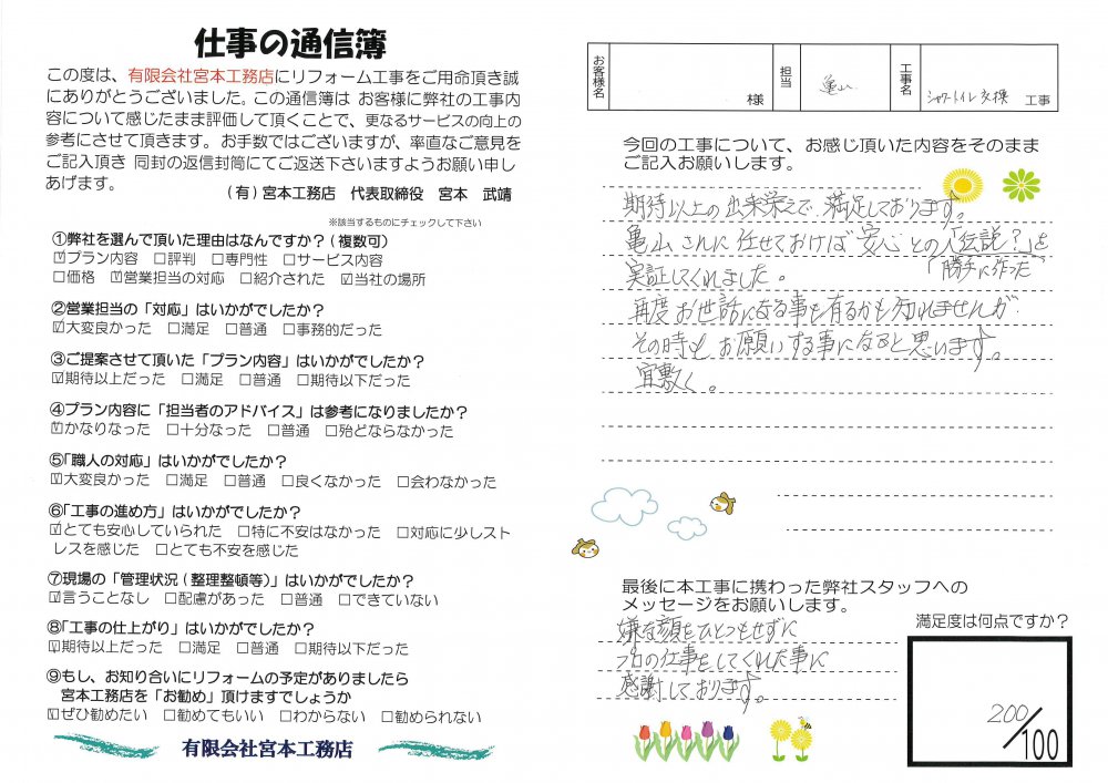 ・今回の工事について、お感じ頂いた内容をそのままご記入お願いします。