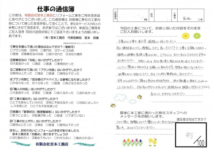 ・今回の工事について、お感じ頂いた内容をそのままご記入お願いします。