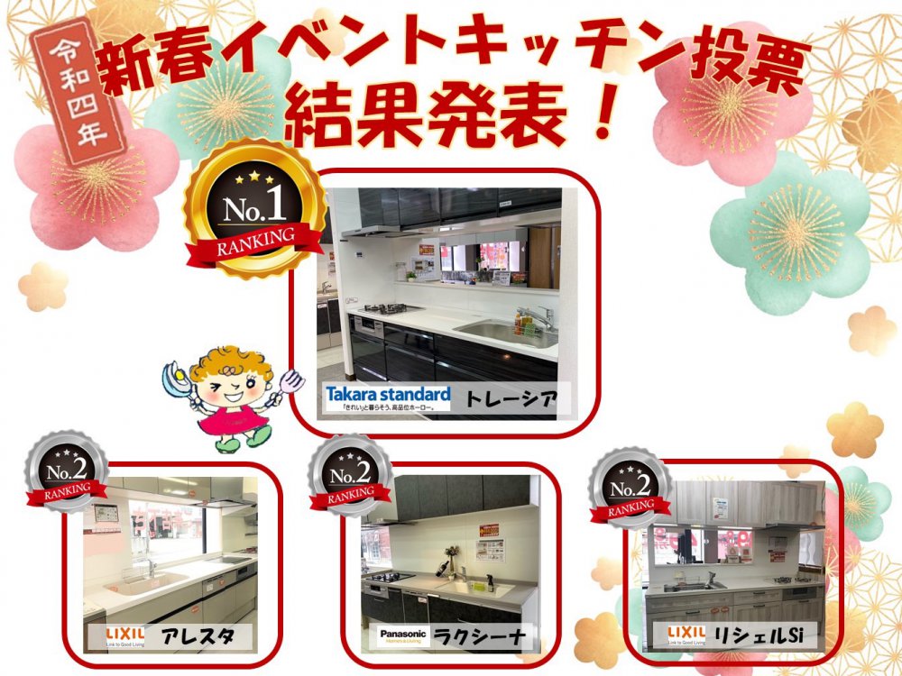 皆様にご協力いただいたキッチン人気投票の結果を発表いたします!!