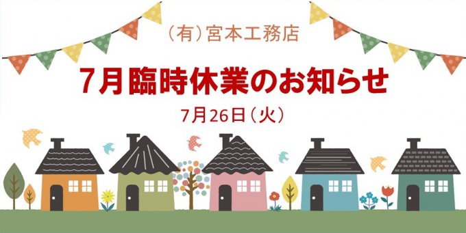 誠に勝手ながら下記日程は宮本工務店創立記念日の為、休業とさせて頂きます。