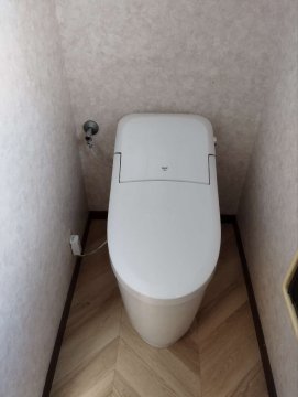 タンク式トイレでありながら、タンクレストイレのようなローシルエットでコンパクトなデザインが特徴です