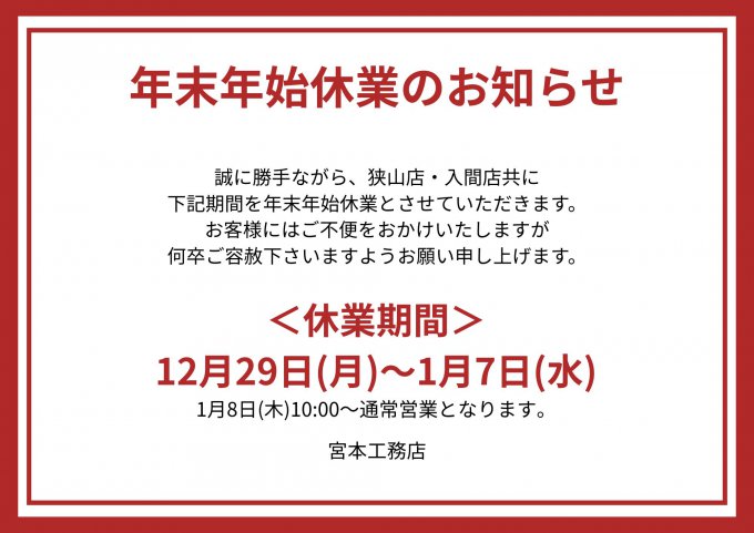 誠に勝手ながら、下記期間を年末年始の休業とさせていただきます。